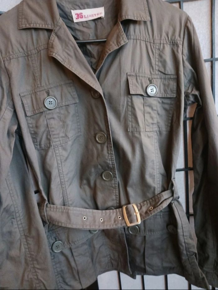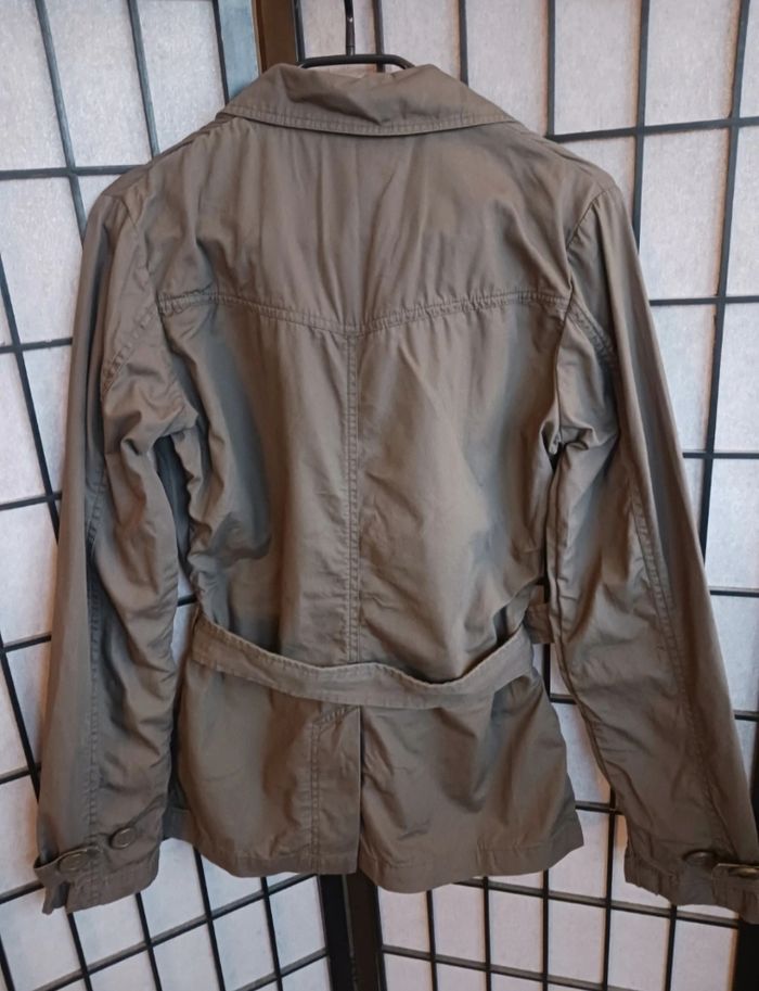 Veste légère style trench. Couleur gris foncé voir kaki La marque est sur l'étiquette du col. En très bon état général Photo du vêtement porté impossible