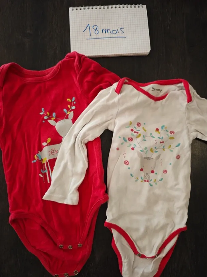 Beaucoup portés mais encore en bon état, étiquette qui ne se voit plus très bien. 💦 Lavé avec de la lessive bébé mais non repassé 📦 Envoi rapide (pas d'envoi via Vinted Go) 💰 Remise sur les lots -> mes autres articles en 18 mois : #18moischouquette 👭 Dressing de jumelles souvent assorties 🏠 Maison non fumeur et sans animaux