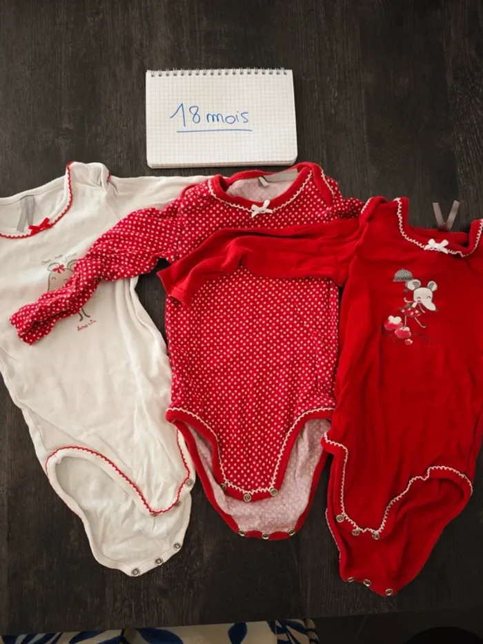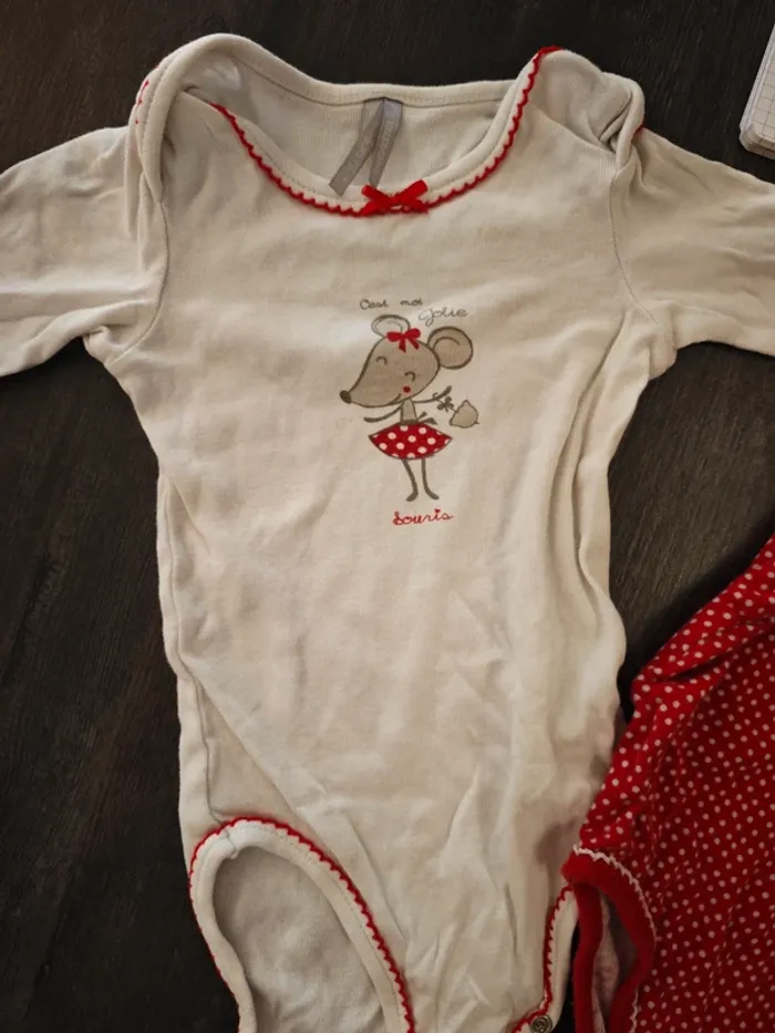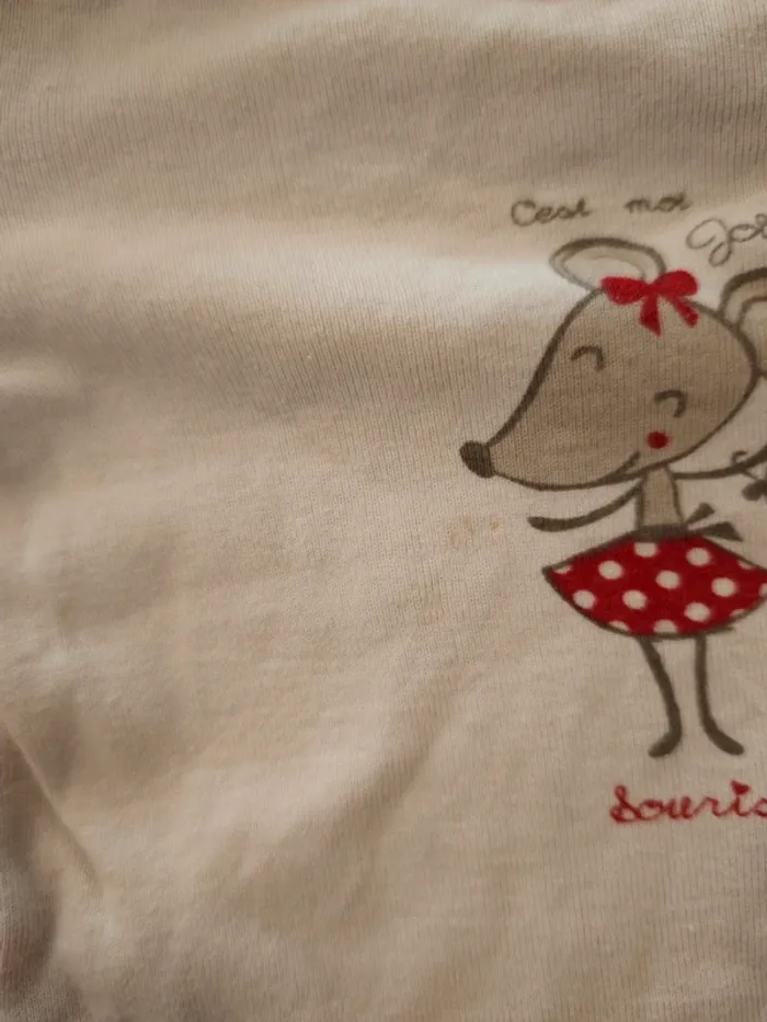 Motif souris Bien portés mais encore en très bon état Légères tâches sur le blanc voir photo 💦 Lavé avec de la lessive bébé mais non repassé 📦 Envoi rapide (pas d'envoi via Vinted Go) 💰 Remise sur les lots -> mes autres articles en 18 mois : #18moischouquette 👭 Dressing de jumelles souvent assorties 🏠 Maison non fumeur et sans animaux