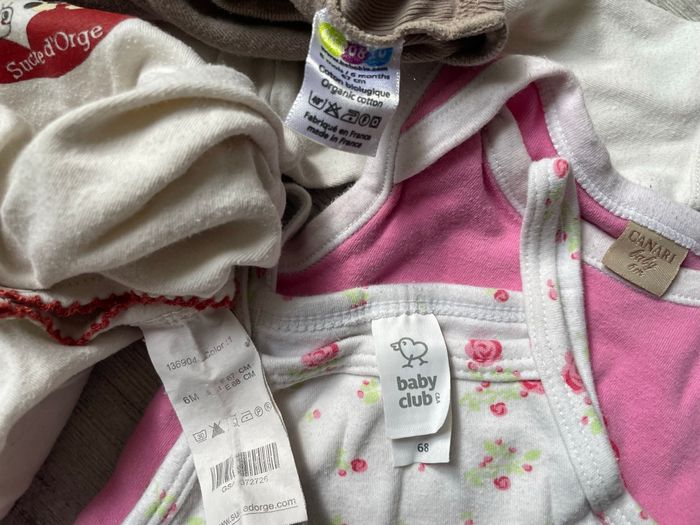 Lot de 4 bodys (2 à manches longues et 2 sans manches) Taille 6 mois Traces d’utilisation Occasion, bon état