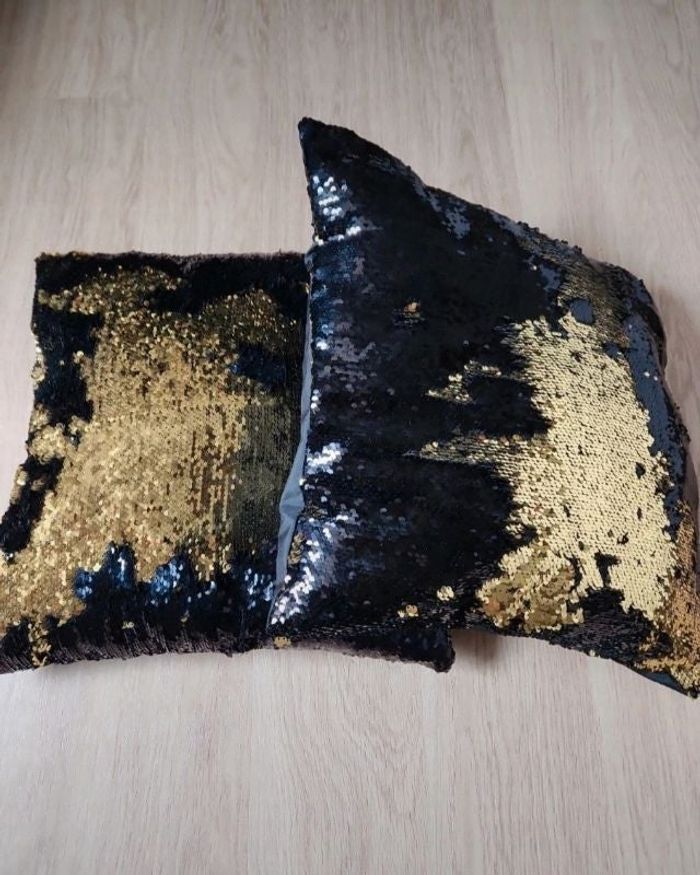 Lot 2 coussins décoratifs à paillettes sequins réversibles dorés décoration maisons du monde