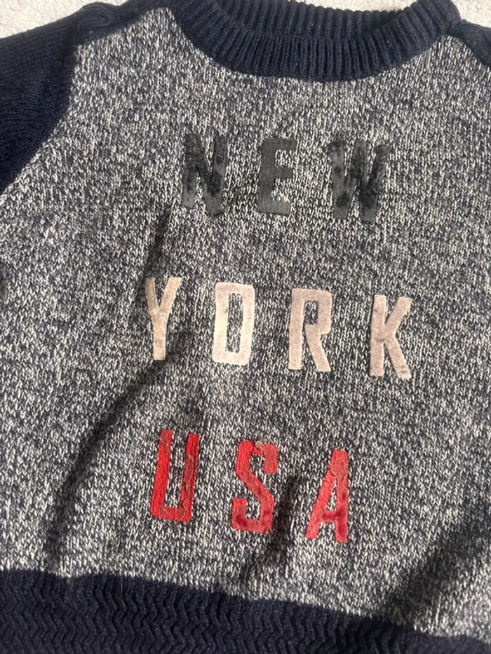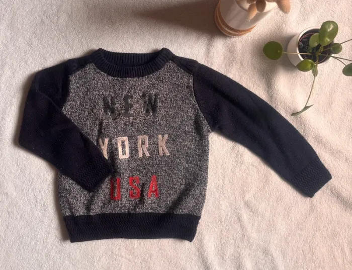 Pull à motif taille 24 mois Écriture un peu passé sinon bon état