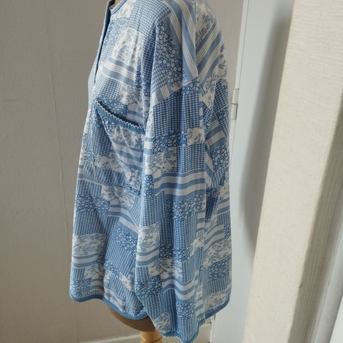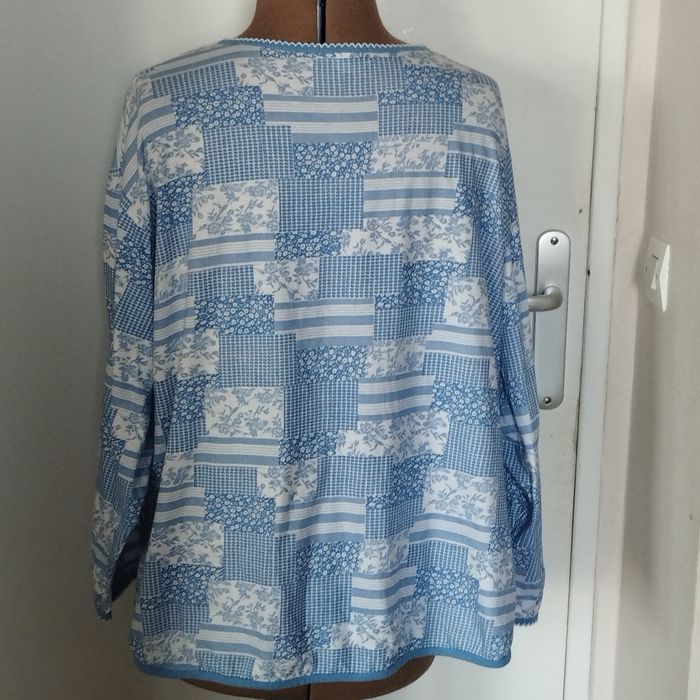 Haut pour femme 46/48 . Haut pour flâner à la maison ou haut de pyjama. Aisselles 62cm. Hauteur 60cm. Ouvertures sur les côtés. Biais de finitions.