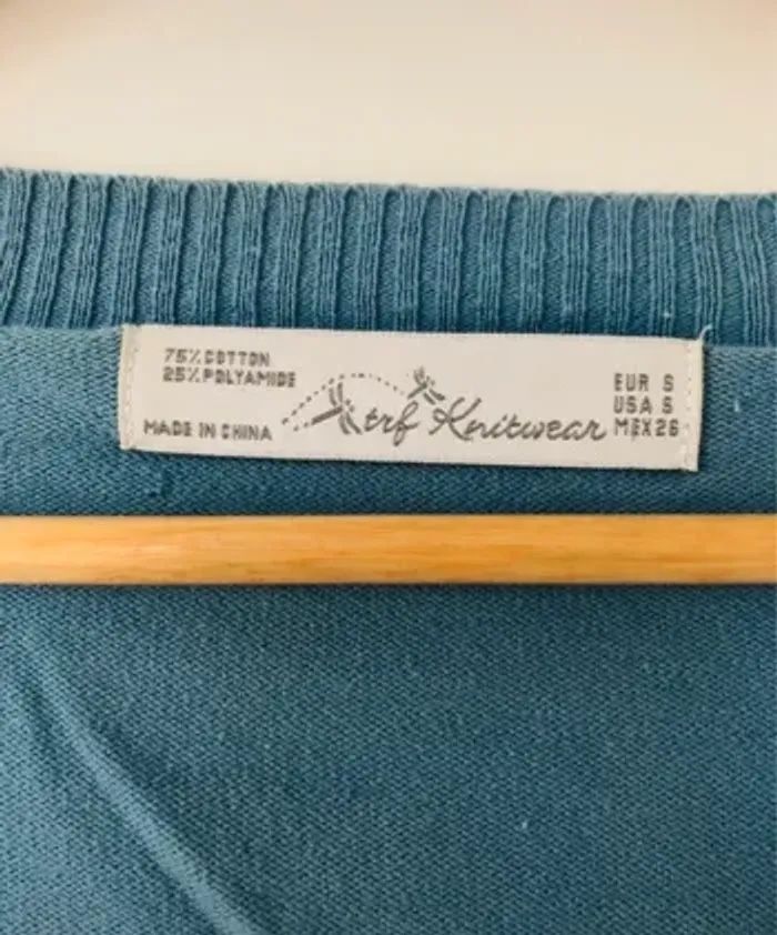 Pull bleu femme S 36 col v petit tricot Zara trafaluc - photo numéro 10
