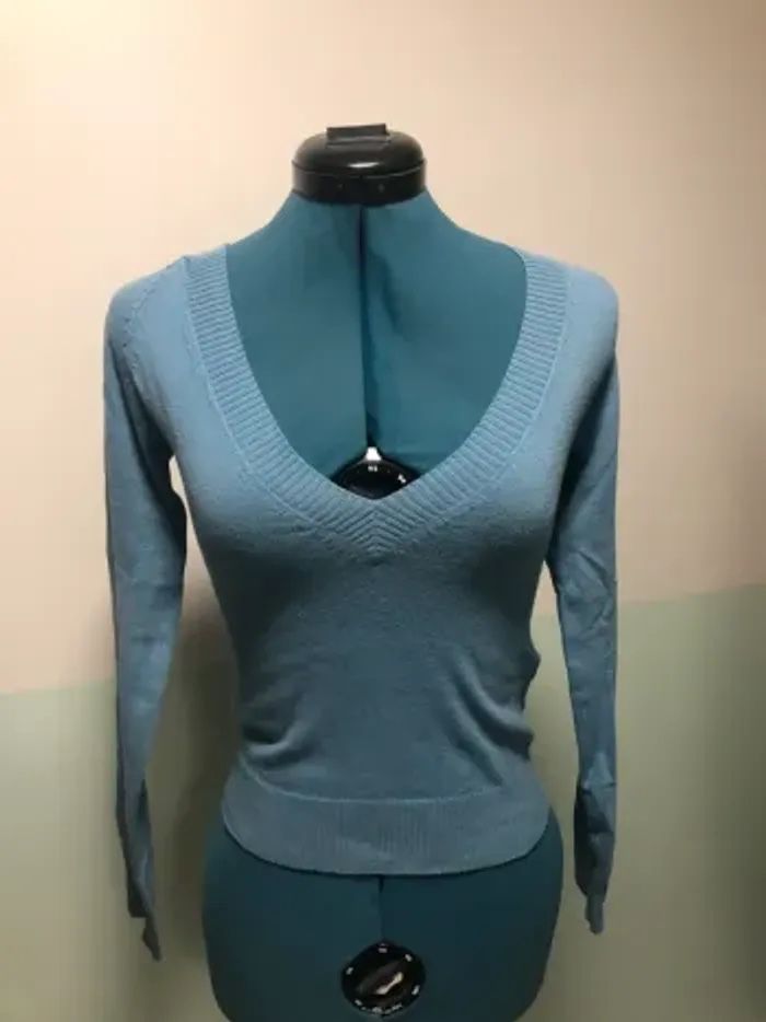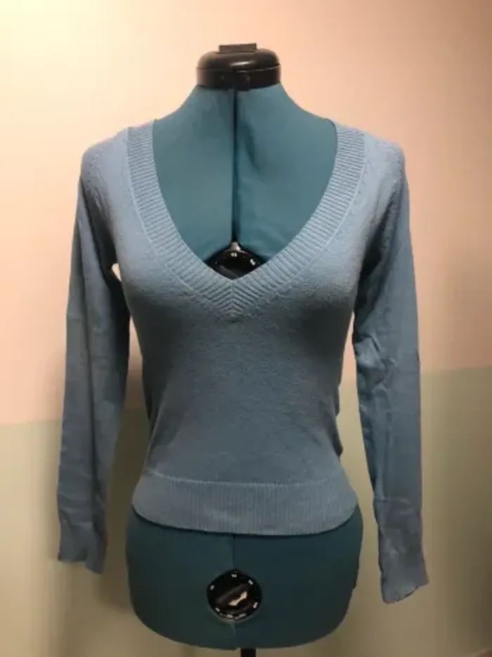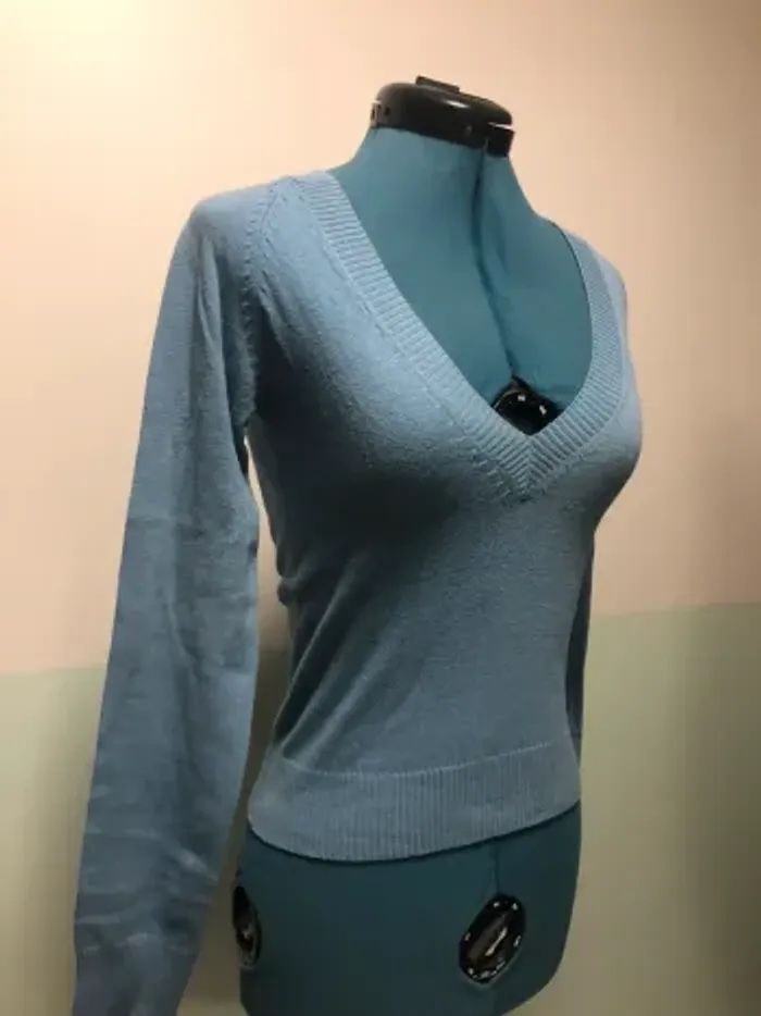 Pull bleu femme S 36 col v petit tricot Zara trafaluc - photo numéro 3