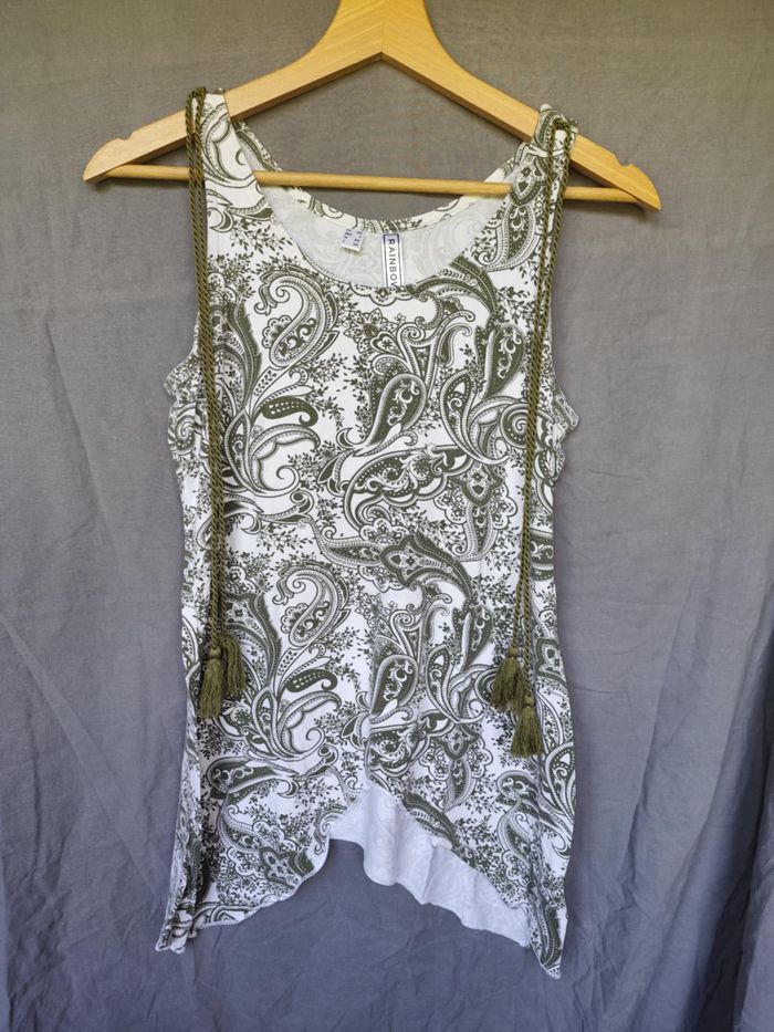 Tunique Rainbow , taille 38/40 , longueur totale environ 68 cm , très bon état . N'hésitez pas à me demander d'autres photos ou infos complémentaires et à consulter mes autres ventes .