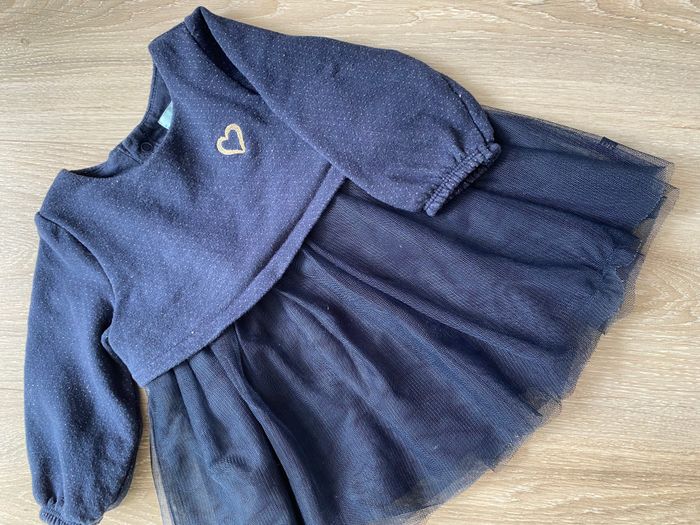 Robe bleu marine et doré avec volants taille 6 mois Idéal pour les fêtes de fin d’année