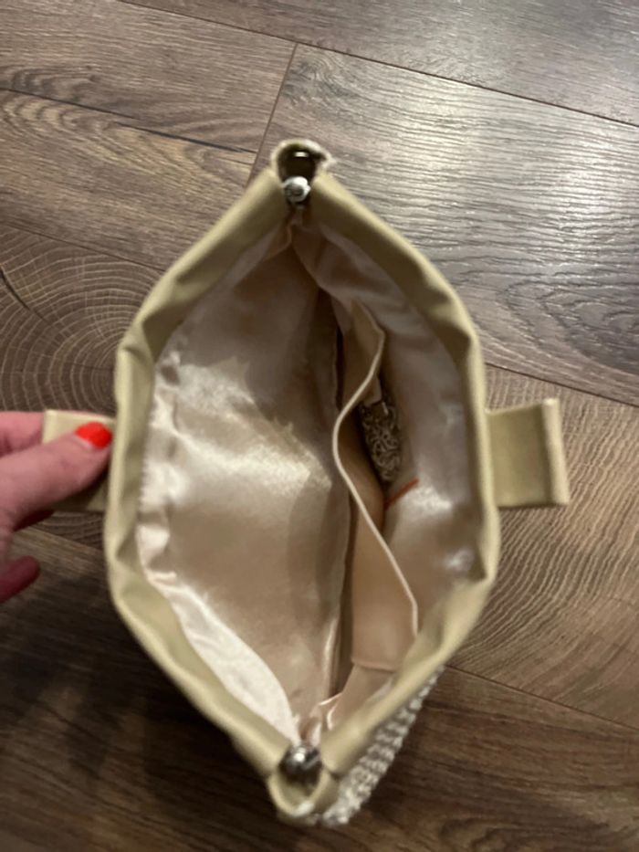Très jolie pochette de soirée doré un petit défaut sur le côté portée une fois