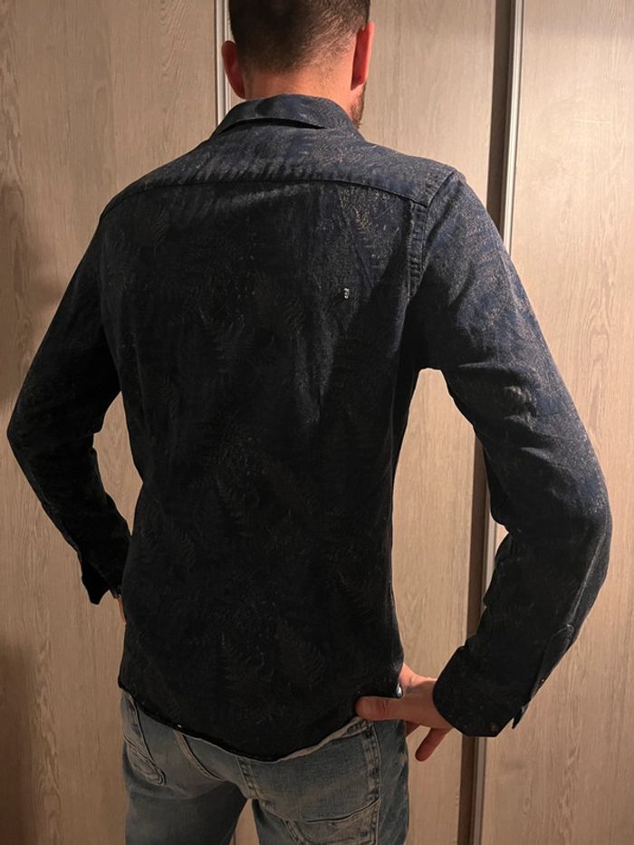 Chemise motif fougère un petit accro derrière (3eme photo ) à recoudre sinon état niquel