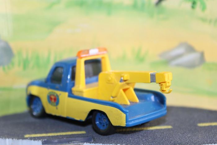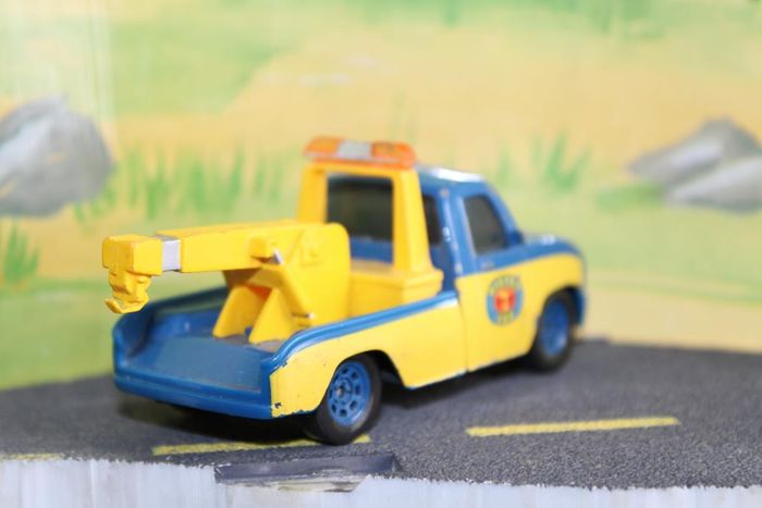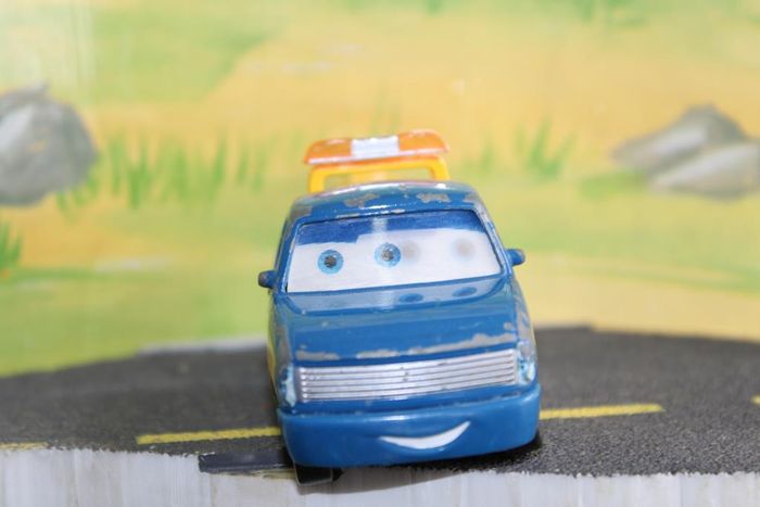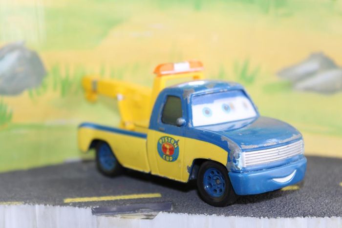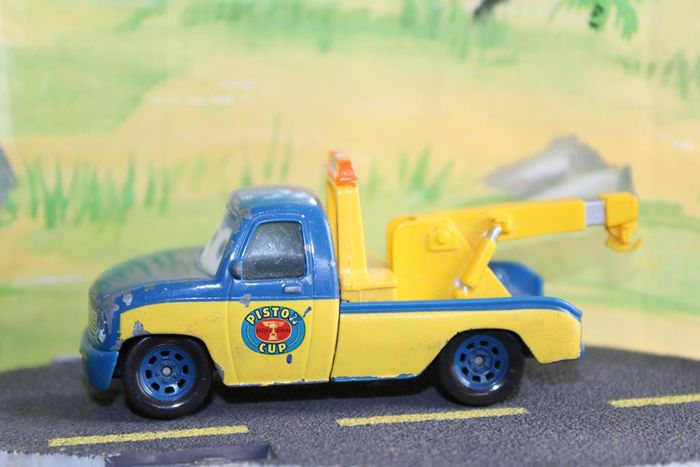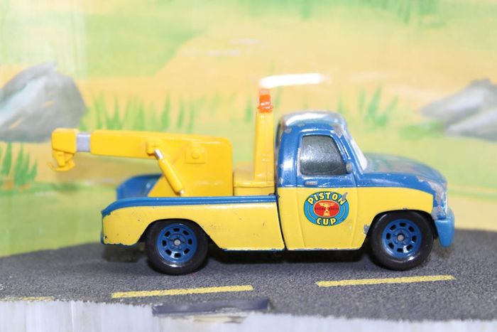 Voiture miniature de l'univers cars représentant Tow, une dépanneuse de la Piston Cup . Elle retire les coureurs accidentés de la piste en cas de panne ou d'accident. Voiture miniature en bon état mesurant environ 7,5 cm. Les yeux sont en impression lenticulaire, ils bougent suivant l'angle de vue Les axes de roues ne sont pas tordus Quelques manques de peinture. Réponds avec plaisir aux demandes d'informations complémentaires Réponse rapide envoi soigné dans les meilleurs délais
