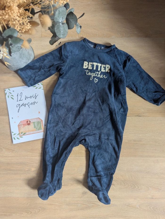 Pyjama velours Kiabi Better together Marine 12 mois - photo numéro 1