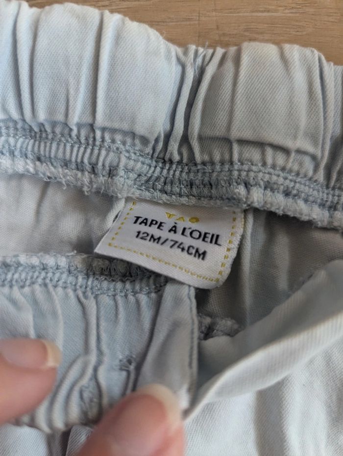 Adorable short effet jean léger parfait pour l'été. Ajustable à la ceinture Taille : 12 mois Marque : Tape à l'oeil État : bon état, porté régulièrement Couleur : Bleu clair. Maison non fumeur et sans animaux. #12moisgarconnonostory Envoi rapide et soigné. Réduction sur les lots 😉