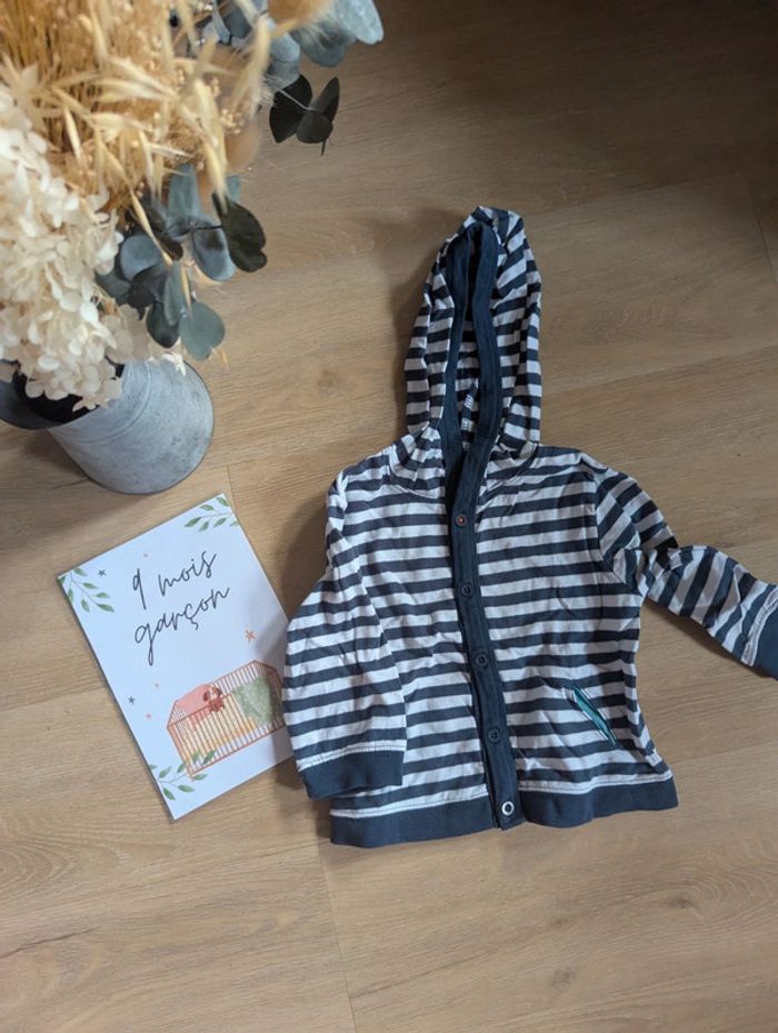 Super gilet rayé Kitchoun en taille 9 mois. Maison non fumeur et sans animaux. #9moisgarconnonostory