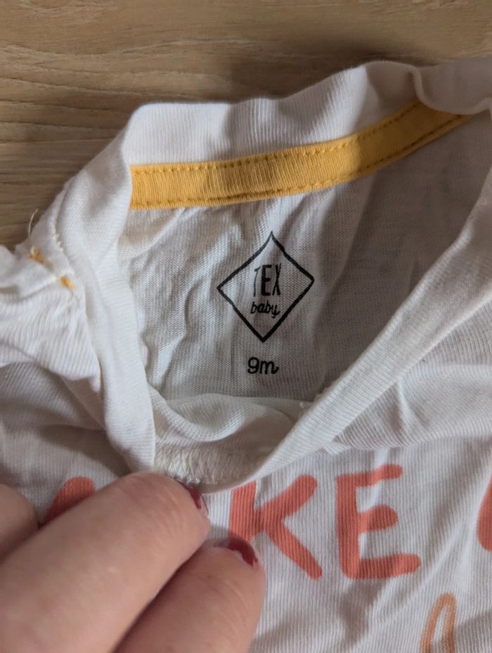 Super t-shirt manches longues 9 mois. Marque Tex, porté parfois. Maison non fumeur et sans animaux. #9moisgarconnonostory