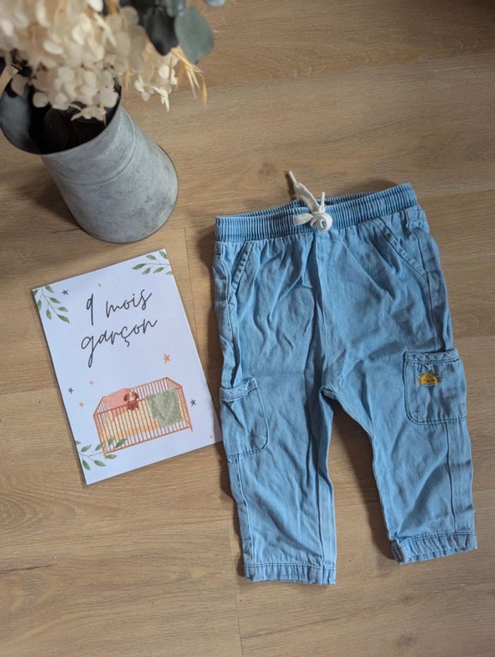 Super pantalon léger en taille 9 mois. Kiabi. En excellent état. Effet jean Maison non fumeur et sans animaux. #9moisgarconnonostory
