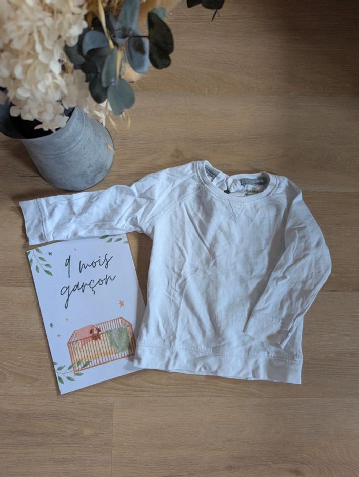 T-shirt manches longues en taille 9 mois. Blanc. En très bon état. Maison non fumeur et sans animaux. #9moisgarconnonostory