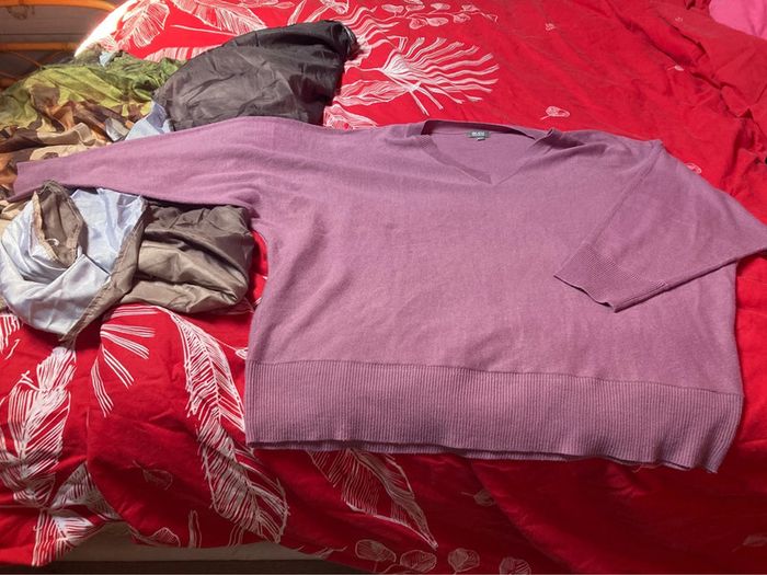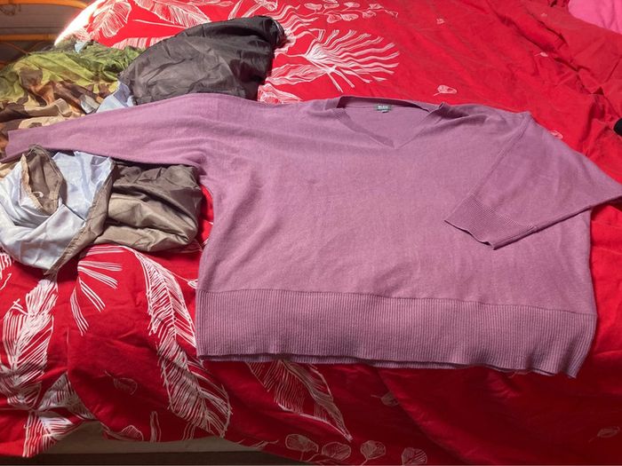 Lot de 2 pulls en très bon état taille 50/52 le noir vient de kiabi et le rose vient de bleu bonheur ⚠️ maison avec des chats, il peut y avoir des poils sur les vêtements malgré qu’ils soient dans une caisse fermée