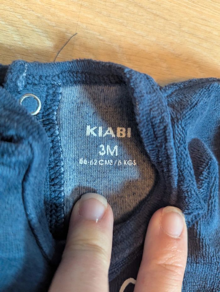 Petit pyjama en velours de marque Kiabi. Taille 3 mois. Ouverture derrière par pression. En très bon état. Maison non fumeur et sans animaux. #3moisgarconnonostory