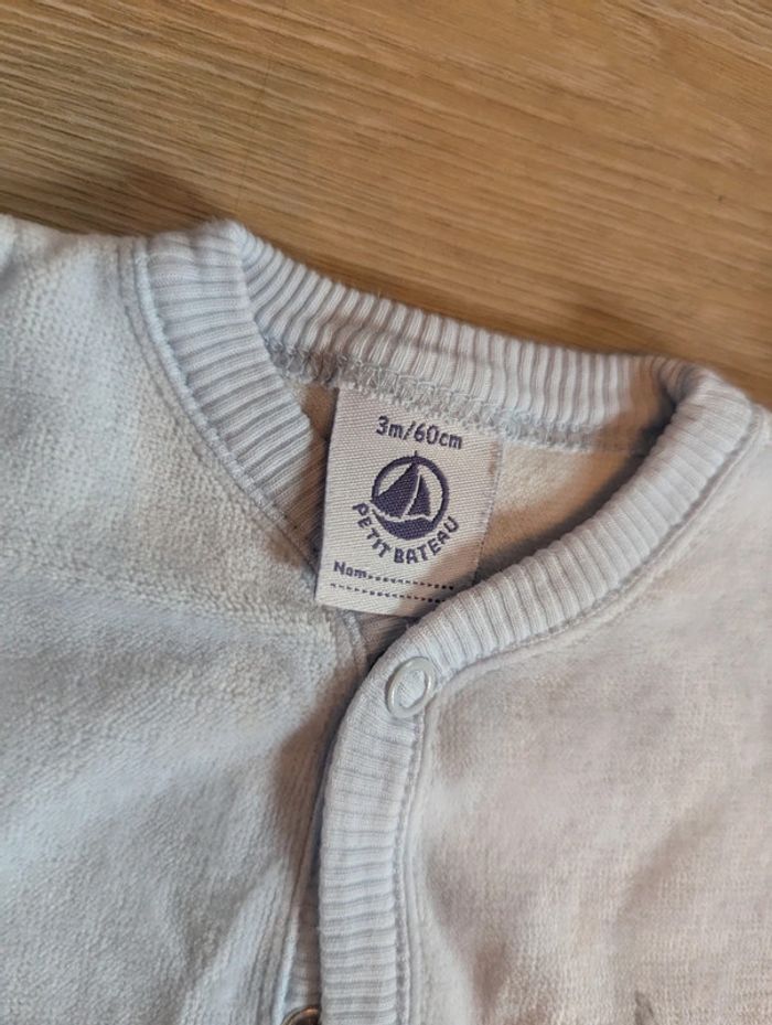 Super pyjama en velours blanc. En bon état, on voit qu'il a été porté. Marque Petit Bateau en taille 3 mois. Maison non fumeur et sans animaux. #3moisgarconnonostory