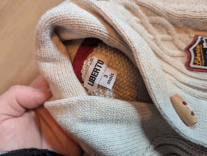Super pull / gilet en maille de marque Liberto. En bon état général. Taille 3 mois. Maison non fumeur et sans animaux. #3moisgarconnonostory