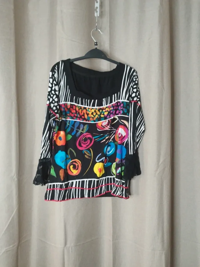 Haut manches 3/4 Fleurie Très joli Taille 40 Fluide Très bon état