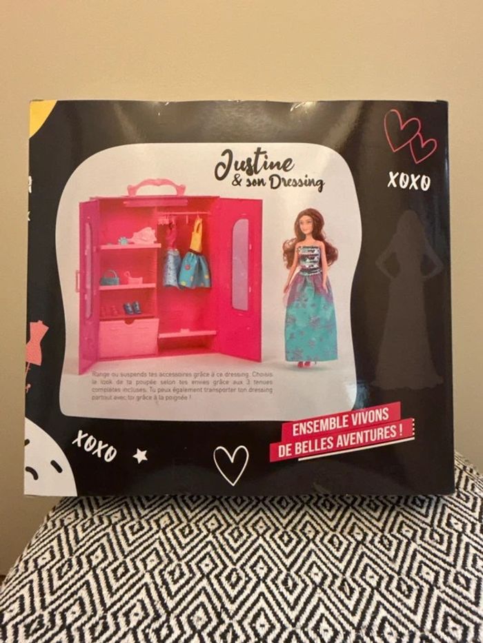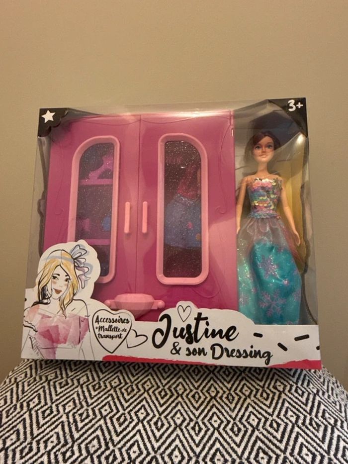 Vendeur Professionnel Offrez à votre enfant la poupée Justine accompagnée de son dressing. Ce dernier permet de ranger et suspendre les accessoires de la poupée. Le lot comprend 3 tenues complètes pour varier les looks de la poupée. Le dressing est facilement transportable grâce à sa poignée. À partir de 3 ans. Expédition rapide