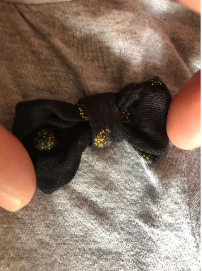 Teeshirt à manches longues Tissaia taille 6 mois avec du doré scintillant dans le noeud, parfait pour les fêtes ou pour briller toute l’année 🙂 #lalyrd6mois