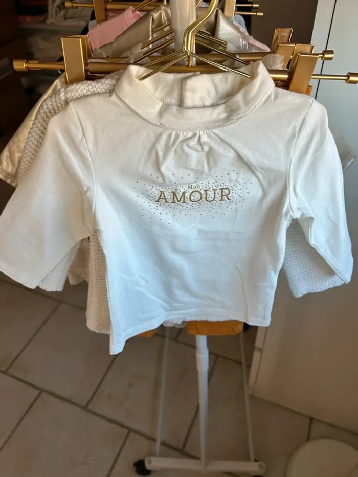 Jolie tenue Kiabi taille 9 mois état neuf 1 tee shirt à manches longues et col roulé 1 gilet en maille 1 pantalon chino #lalyrd9mois