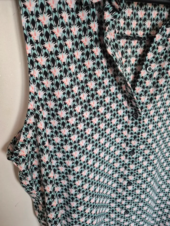 📌 Lot 20% de remise pour l'achat de 5 articles, suite ... Débardeur multicolore, ,boutonnée sur le devant, très fluide, ➡️Largeur à plat sous les bras  56 cm ➡️Longueur 66 cm ➡️100% polyester ⭐ Etat neuf ✈Envoi rapide des colis 💗 Abonnez vous à mon profil, nombreux articles ajoutés régulièrement ! 🌸 Tapez Laetitresors pour voir mes annonces #laetitresors_debardeur44 #debardeur #large #bretelle #multicolore #top #blouse #rose #fleurs #fleurie #vert #laetitresors