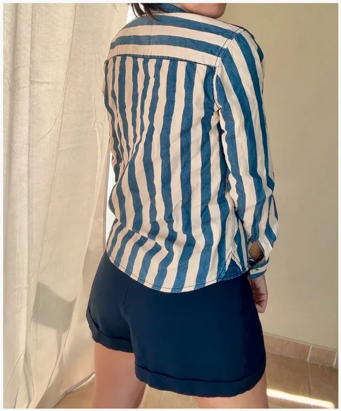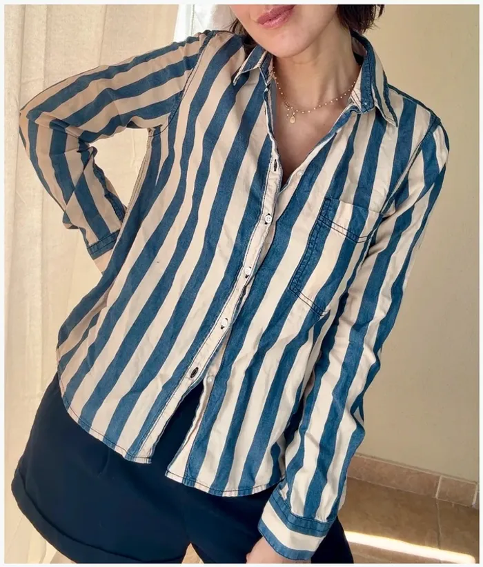 Chemise à rayures Couleur : beige et bleu jeans Taille : S Marque : Mango Très bon état #chemisearayures #chemiserayée #chemisebleuetbeige #chemisemango #chemise #surchemise #chemisemango36 #mangotailles #mango36 #chemiserayeebleuetbeige