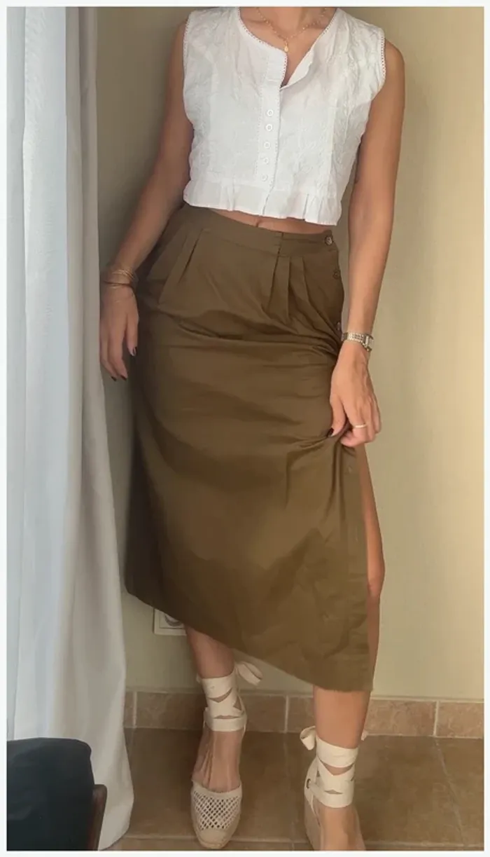 Jupe longue kaki vintage dressing 36 très bon état - photo numéro 1