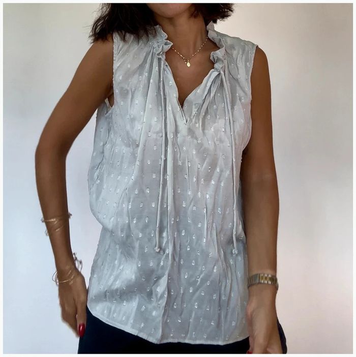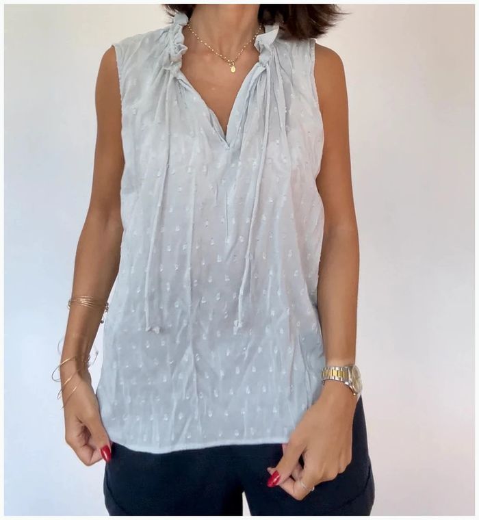 Blouse débardeur en plumetis Couleur : Vert d’eau Taille : 40 Marque : H&M Très bon état #blouse#blousevertdeau #hautvertdeau #topvertdeau #été #blouseestivale