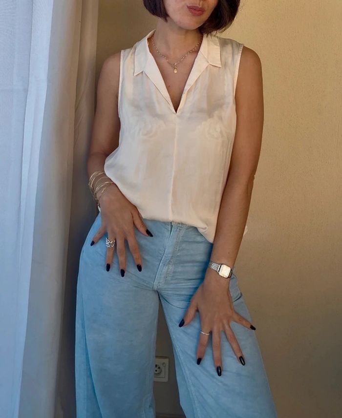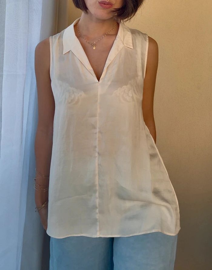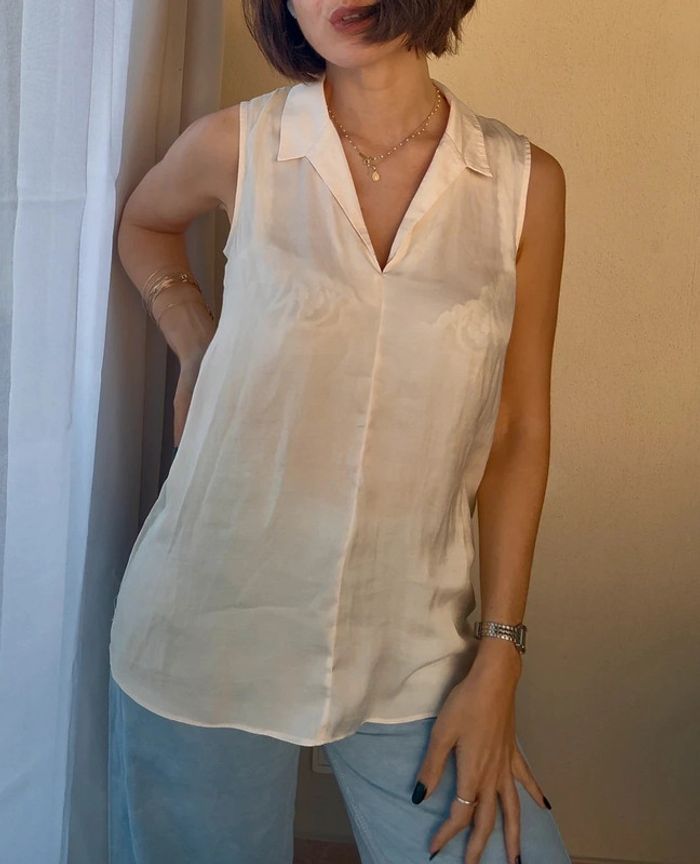 Polo - blouse satinée Couleur : rose très pale ~ beige rosé Taille 36 Marque : Monoprix Excellent état #monoprix #top #débardeur #sansmanches #blouse #satin #blousesatinée #blouse #blousemonoprix #blouseélégante #blousesansmanches #blousecoupepolo