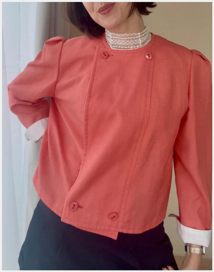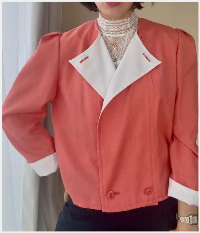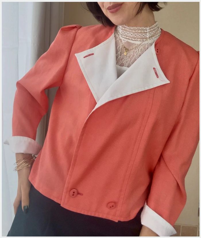 Veste courte Pas de marque - vintage Couleur : Corail et blanche Très bon état #veste #vestecourte #vestecorail #vestechic #vestevintage #vesteélégante