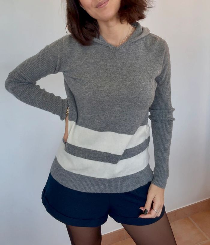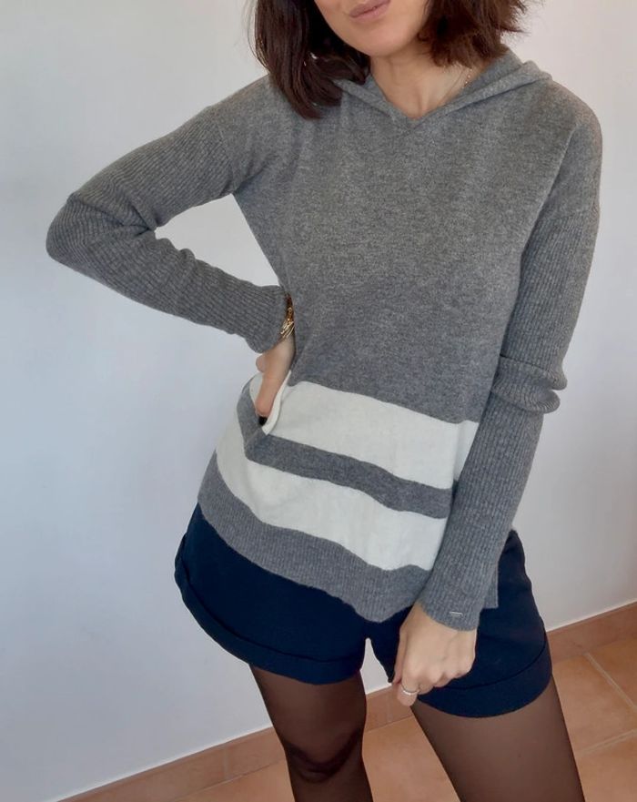 Pull à capuche Couleur : blanc et gris Marque : Tommy Hilfiger Taille XS convient aussi à un S Matière : cachemire Parfait état #pull #pulltommyhilfiger #pullhilfiger #pulltommyhilfigerxs #pullcachemire #pullcachemiretommyhilfiger #pullxstommy