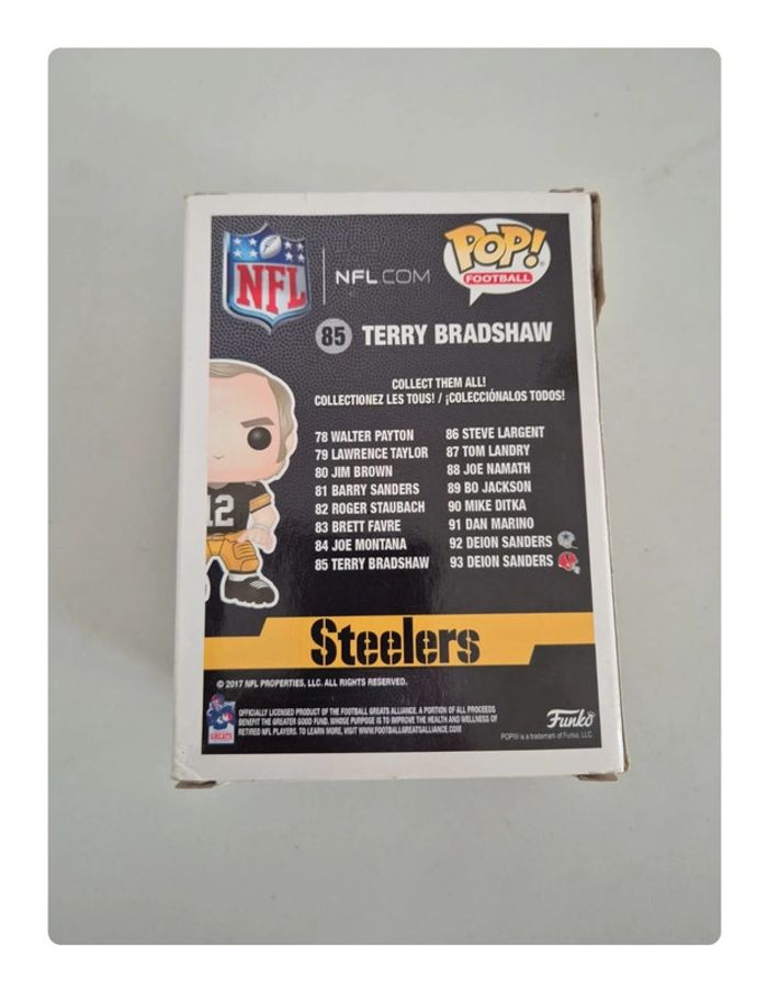 Figurine FUNKO POP NFL 85, Terry Bradshaw, neuf jamais sortie de sa boîte d'origine, boite abimée voir état sur les photos D'autres figurines Pop disponibles ici : #PopToysandgamed #NFLToysandgamed 📦 Expédition rapide & protégée : Envoi sous 24h via le transporteur de votre choix (hors mercredi et dimanche – dépôt fermé). Envoi Mondial relay/ In post sous 48h ⚠️ Pas d’envoi via Vinted Go / Homerr