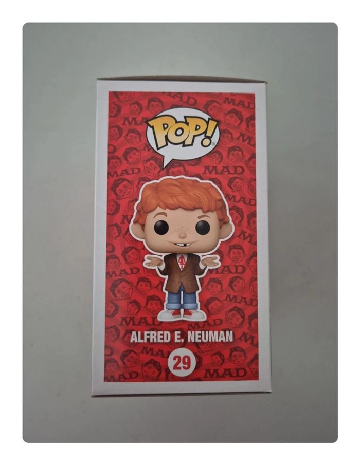 Figurine FUNKO POP Mad 29, Alfred E Neuman, neuf jamais sortie de sa boîte d'origine, voir état de la boite sur les photos D'autres figurines Pop disponibles ici : #PopToysandgamed #MadToysandgamed Envoi bien protégé en 24h maximum, sauf mercredi et dimanche aucun envoi possible car relai de dépôt fermé. Mondial relay sous 48h Pas d'envoi Vinted Go/Homerr