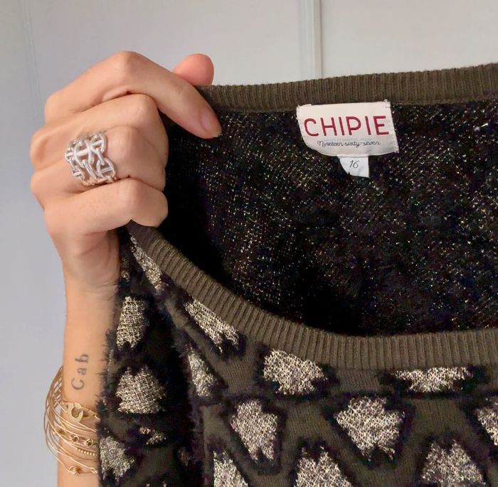 Pull over vert kaki noir et doré - taille 16ans équivalent 36 - chipie - parfait état - photo numéro 5