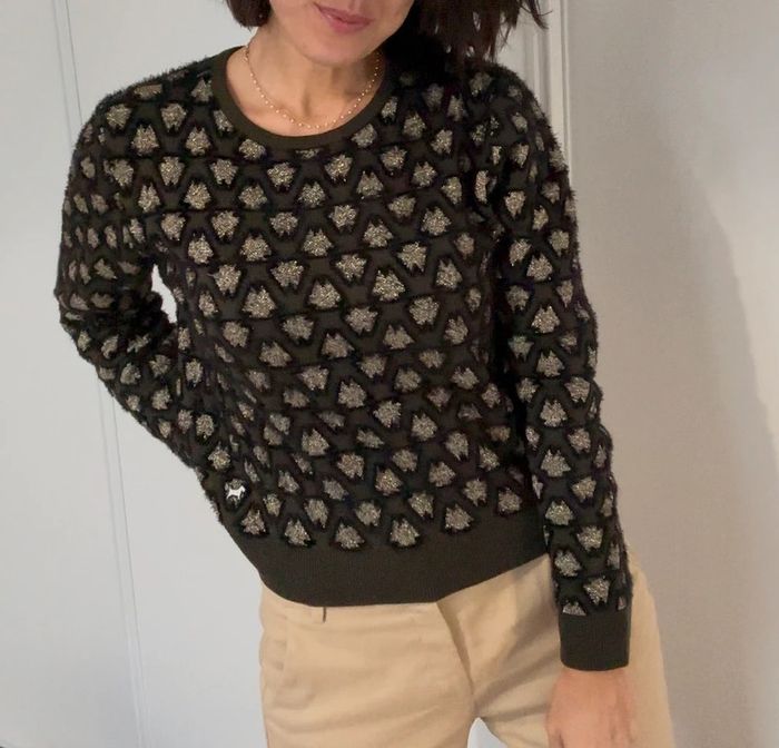 Pull over vert kaki noir et doré - taille 16ans équivalent 36 - chipie - parfait état - photo numéro 4