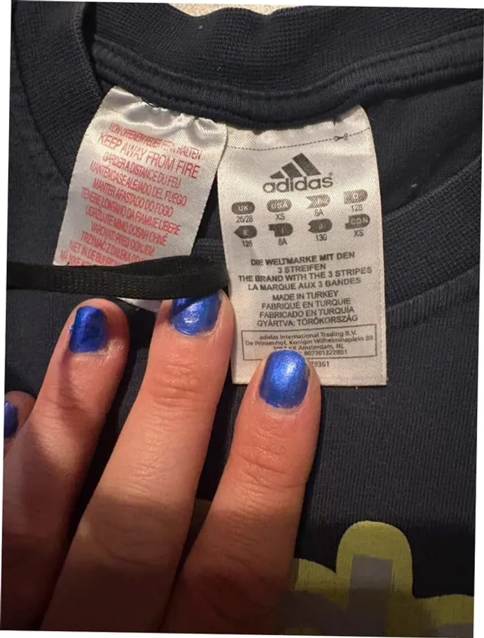 T-shirt adidas bleu marine 8 ans minuscule trou devant - photo numéro 2