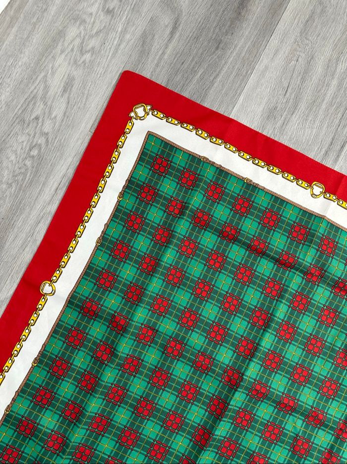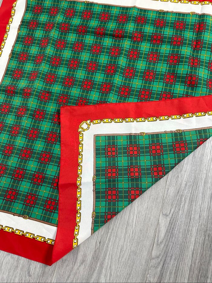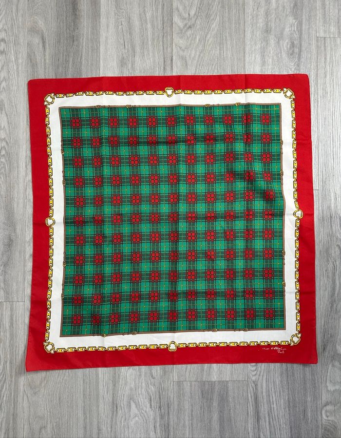 Foulard écossais tartan carreaux rouge et vert Vintage 75x75cm