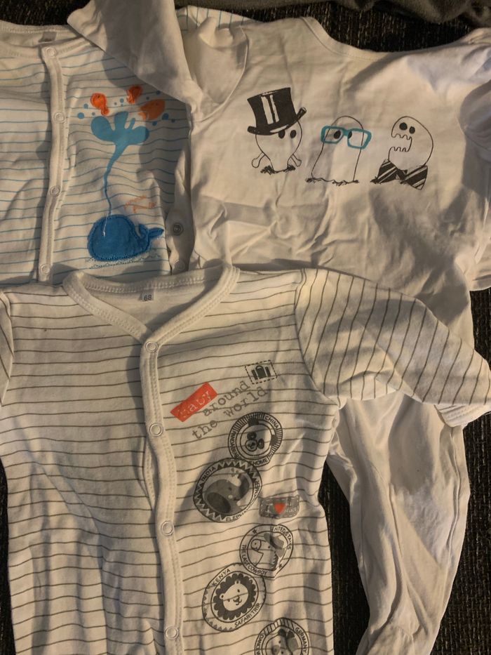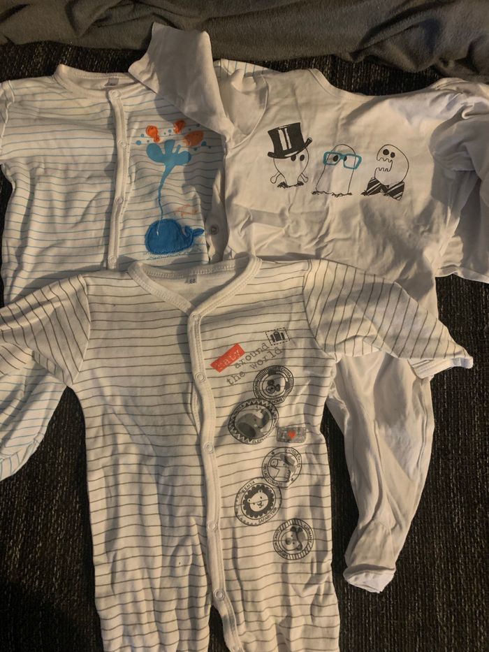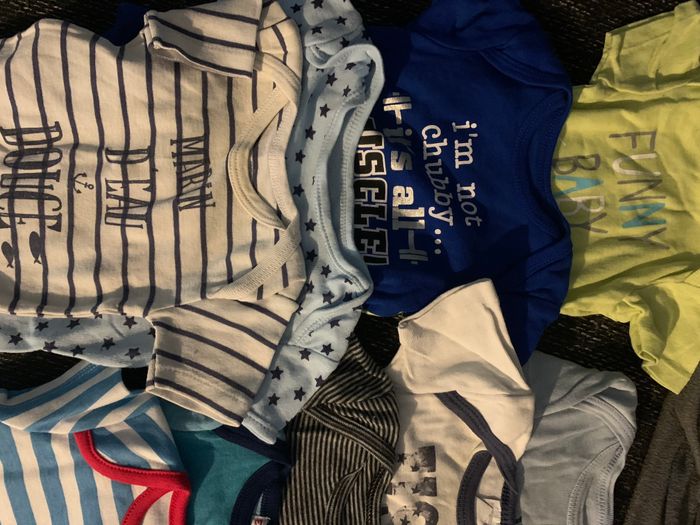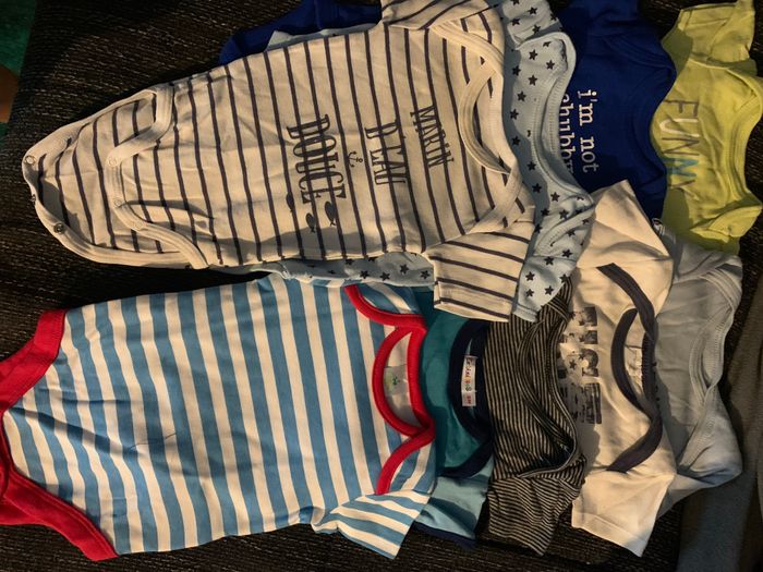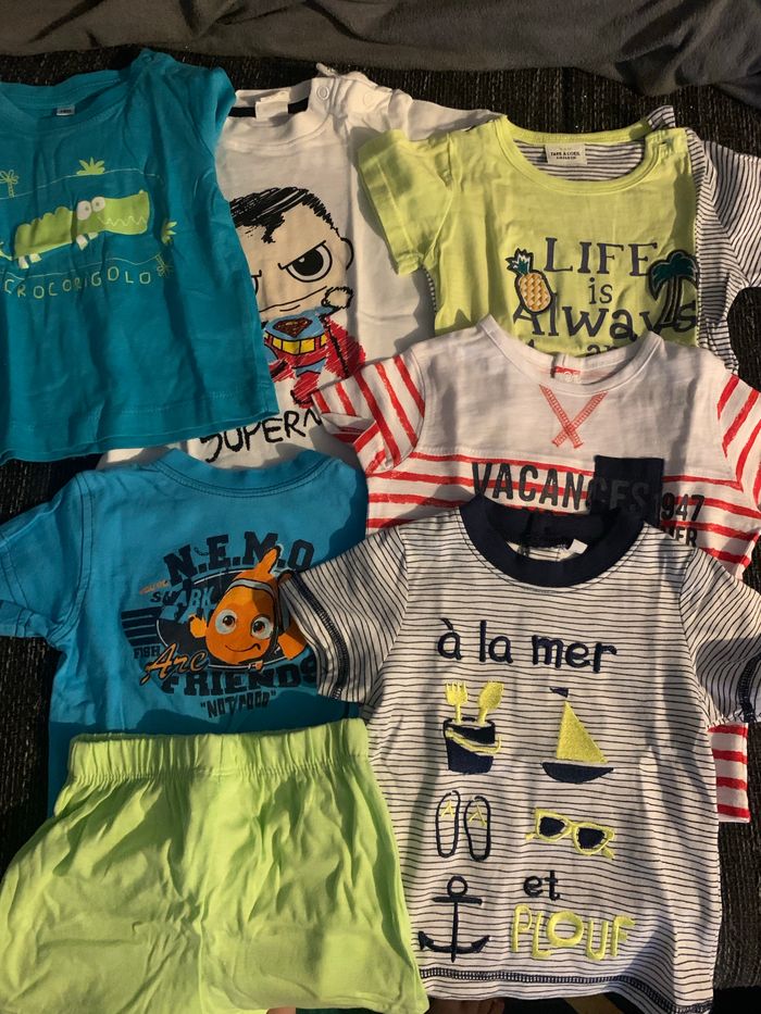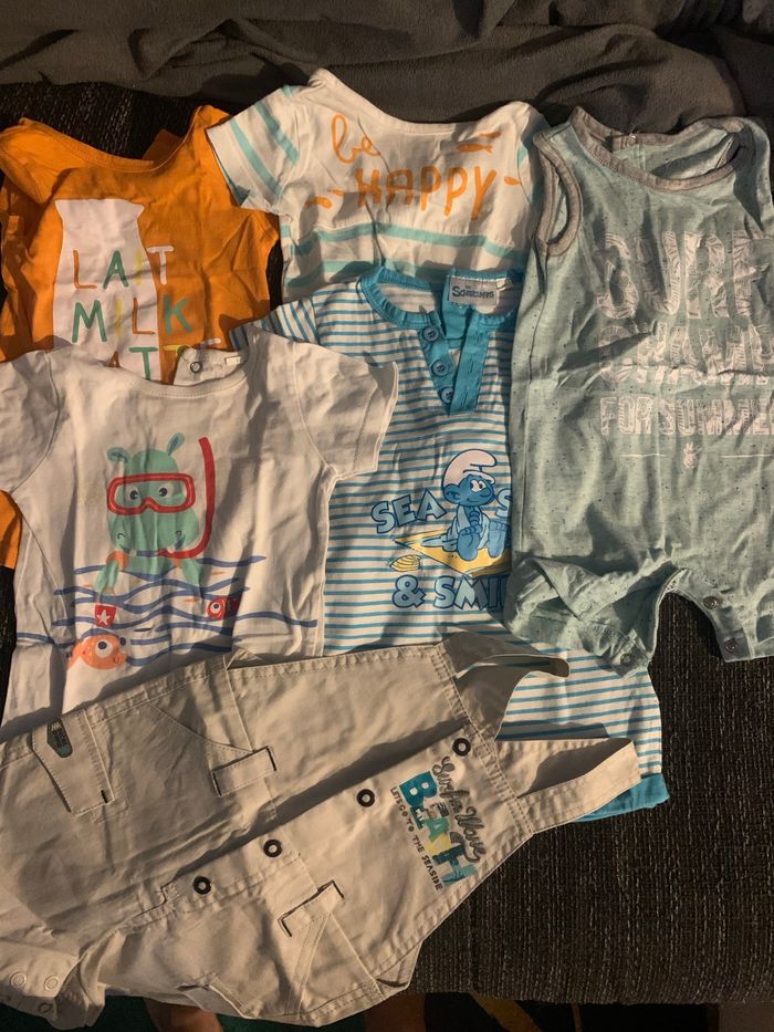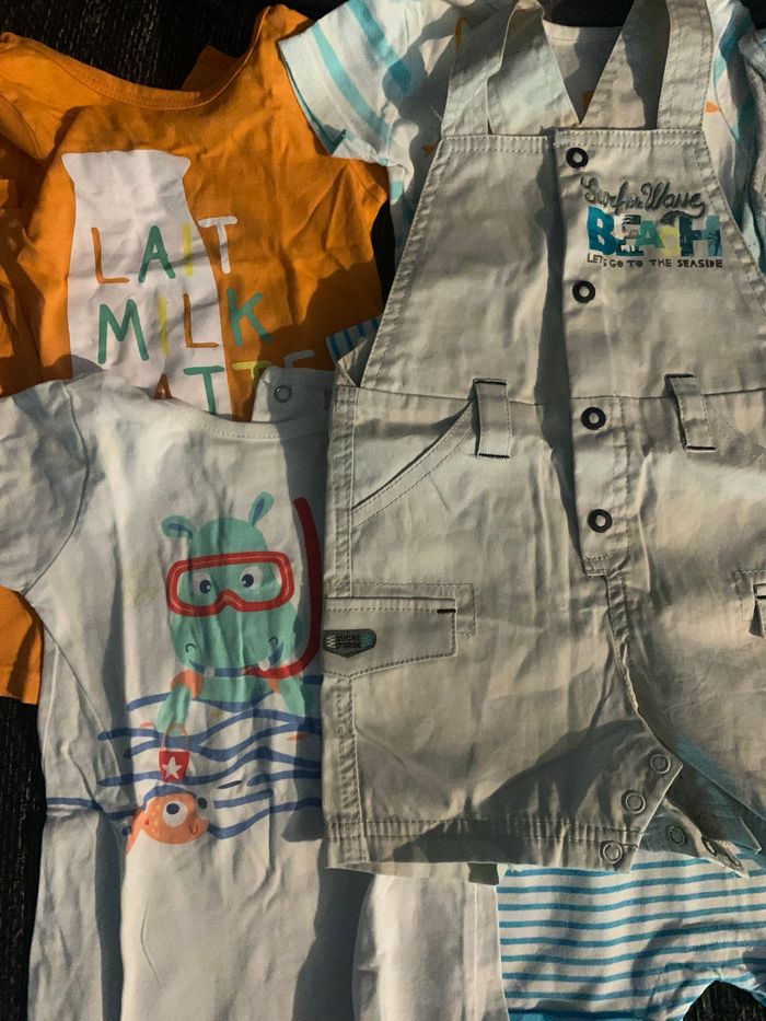 3 pyjamas été 1 salopette 5 barboteuses 6 t-shirts 1 short 9 bodies Tous en 6 mois Tous en bon état, peu porté