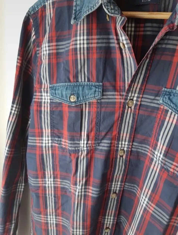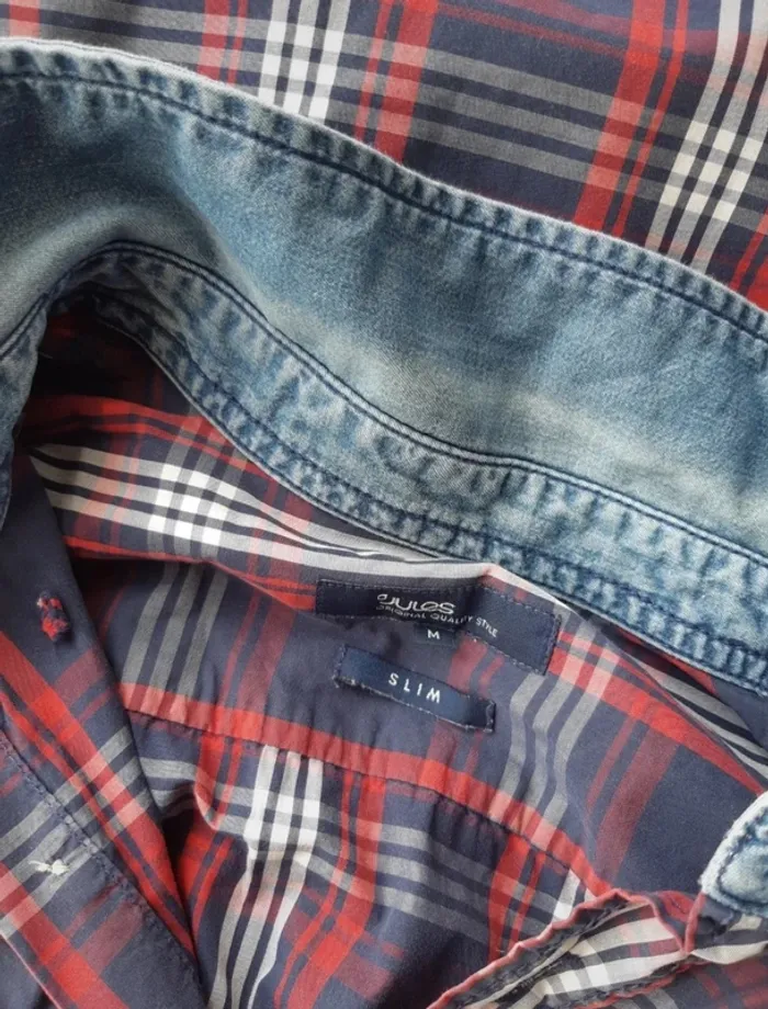 Chemise slim à carreaux Détails en jean Coupe slim Poches Taille M Jules #anthonyagnes_homme