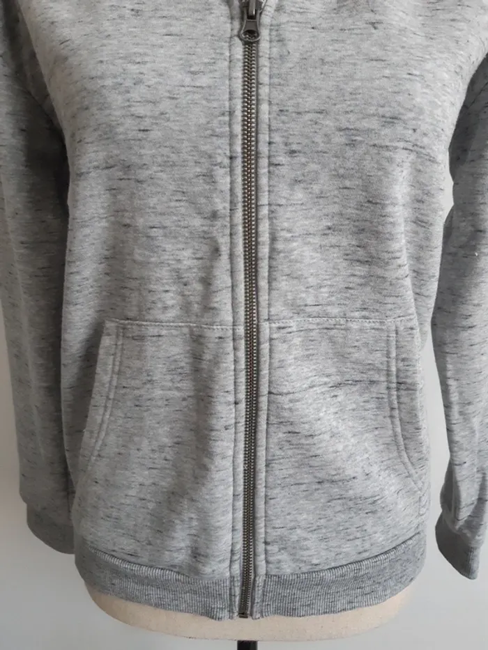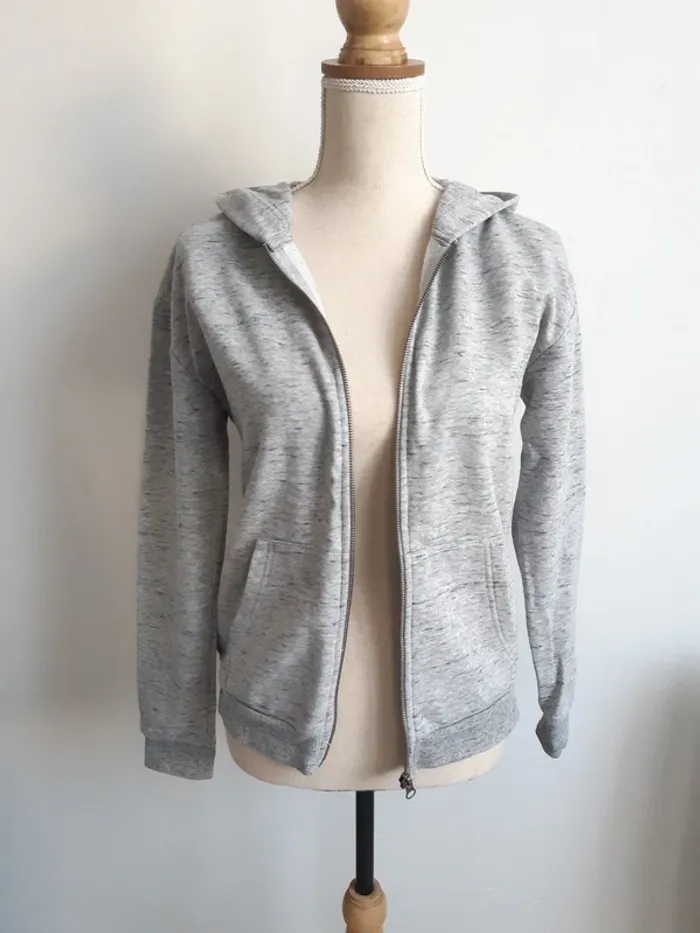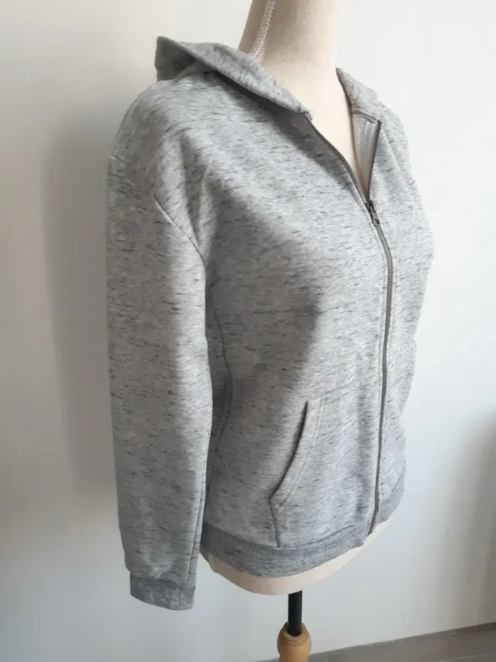 Gilet gris à capuche 2 poches Fermeture zippée L'étiquette indique une taille S, correspond davantage à un XS #anthonyagnes_femme34