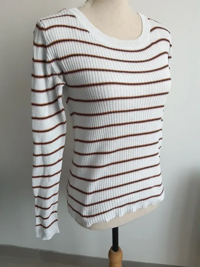 Haut manches longues Motif rayé Côtelé Un peu jauni aux aiselles voir photo Taille S/36 #anthonyagnes_femme36