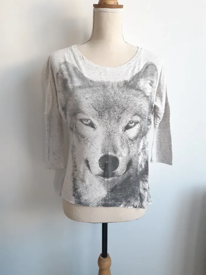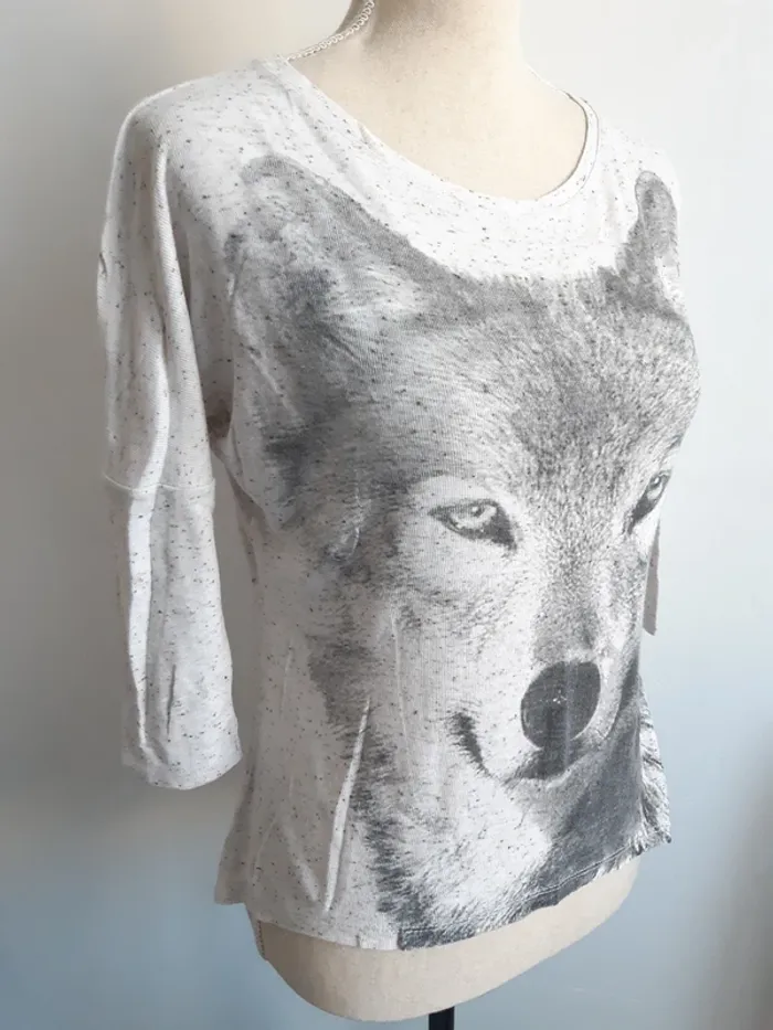 Haut manches 3/4 Tête de loup Taille S/36 Kiabi #anthonyagnes_femme36