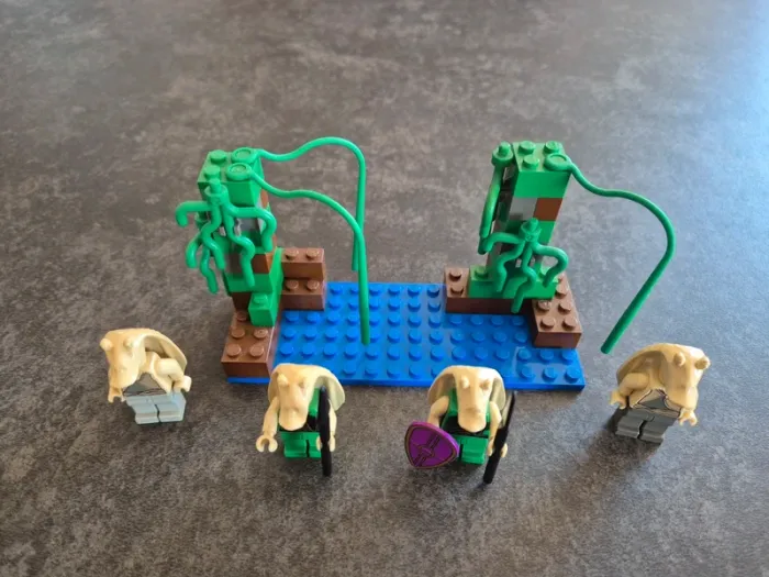 Figurines lego 4 gungans + décor issu du set 7115 et 7121 star wars