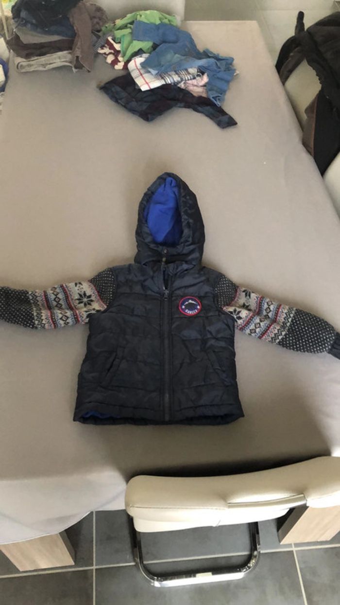 Manteau à capuche impermeable et interieur polaire Manche en laine Taille 3ans Bon état #garcon3ans #manteau