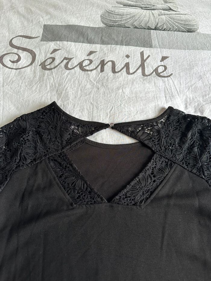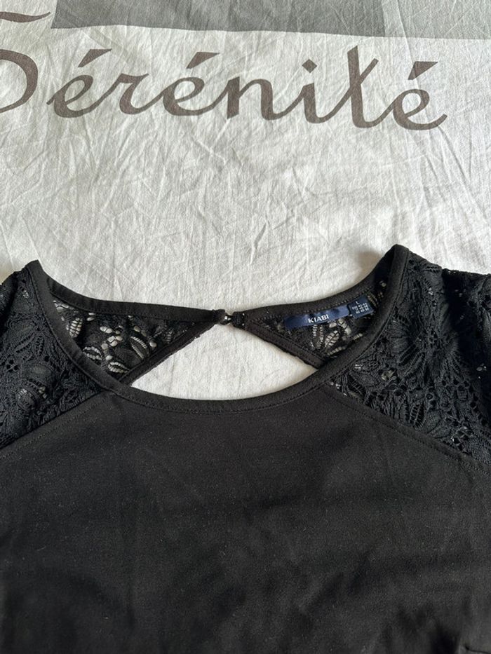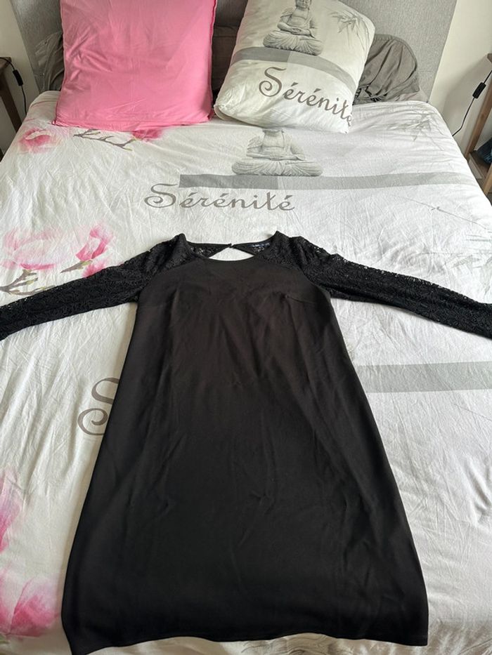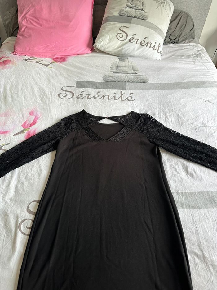 Robe noir jusqu’aux genoux, manche dentelles et haut du dos. Taille L neuve jamais portée de marque Kiabi