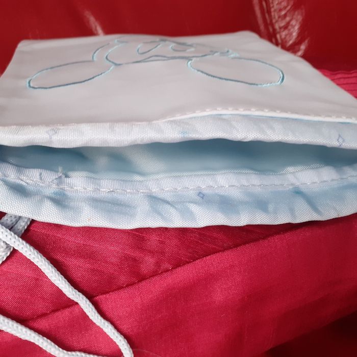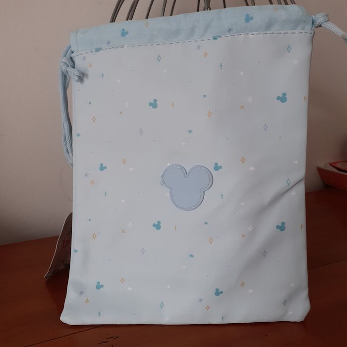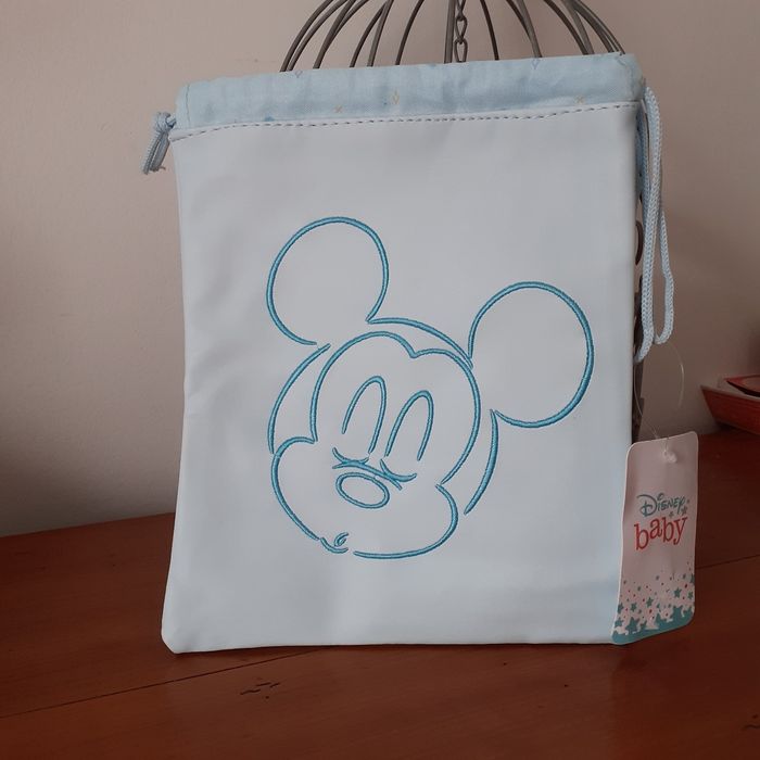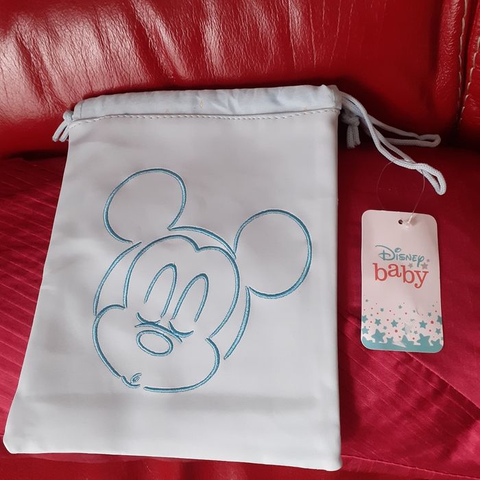 Article Neuf encore étiqueté, marque Disney Baby. Pochette plastifiée, avec cordons de serrage. Motifs différents recto-verso. Multifonctions : Rangement/transport carnet de santé; transport doudou; maillot de bain/piscine; goûter etc.... Format 25 X 20 cm // voir photos pour détails